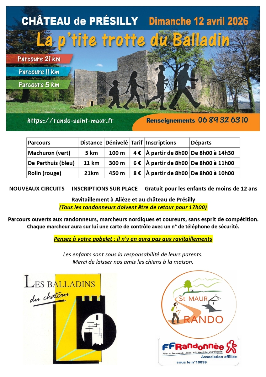 Contact : Rando Saint-Maur & Balladins du Château 06 89 32 63 10 ou rando.saint.maur39@gmail.com