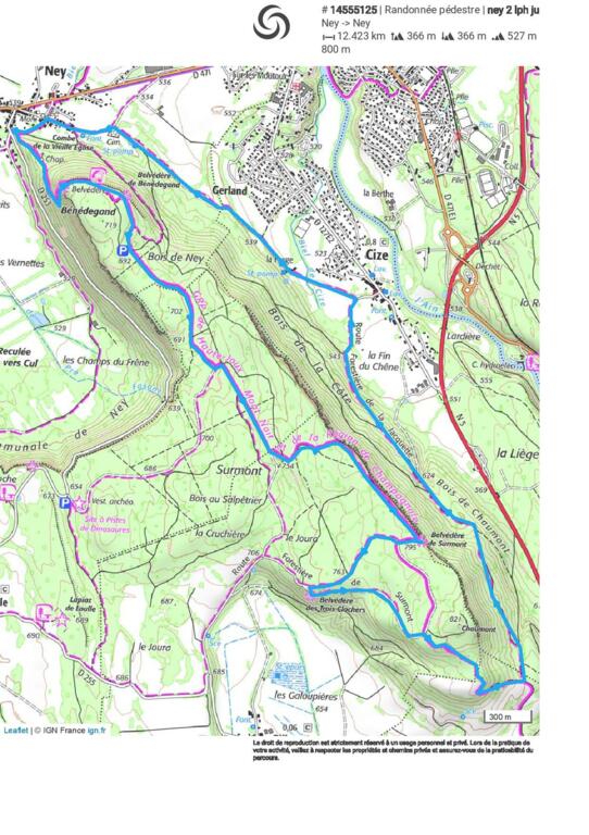 passant par plusieurs belvédères (Bénédegand, Surmont, 3 clochers.)