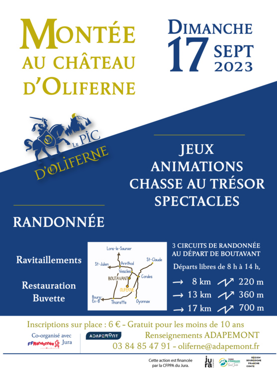 La Montée au Château d'Oliferne aura lieu le dimanche 17 septembre, organisée par le club des Randonneurs de la Petite Montagne d'Arinthod.
