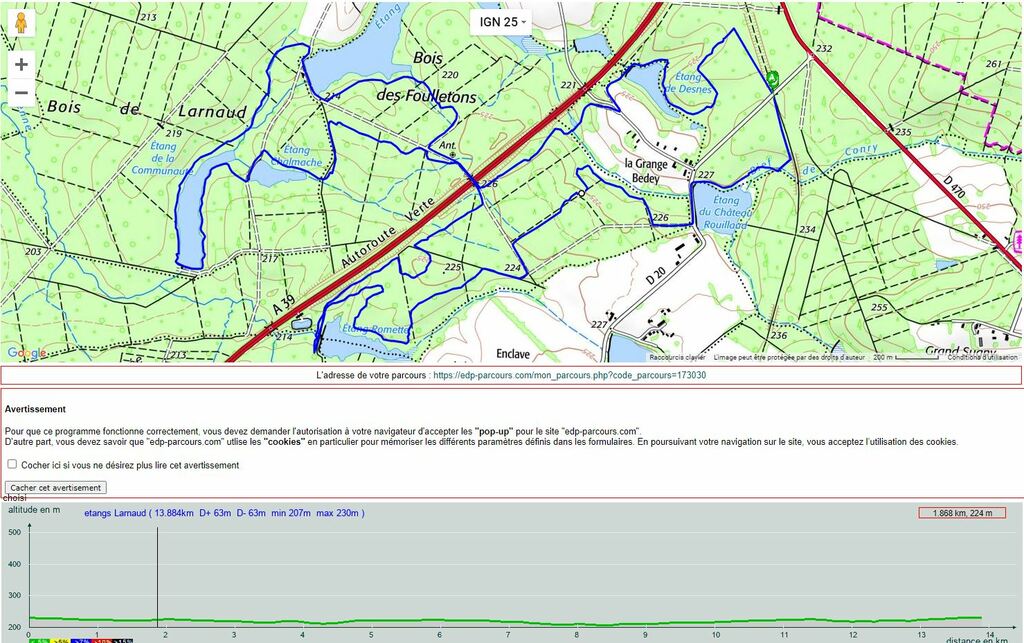 Intitulé de la randonnée : Tour des étangs de Larnaud
