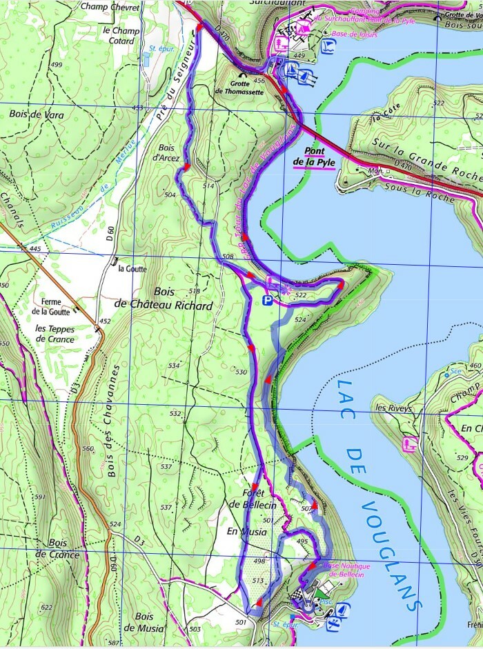 Point de départ : parking base nautique de Bellecin |