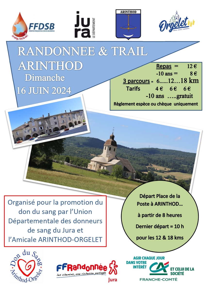 Organisée pour la promotion du don du sang par l'Union Départementale des donneurs de sang du Jura et l'amicale ARINTHOD-ORGELET.