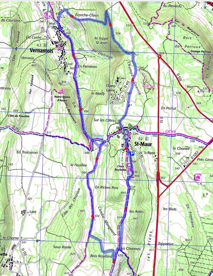 Information complémentaire sur la sortie : Randonnée de rentrée sans grande difficulté. Au départ de Saint-Maur, boucle passant Vernantois et remontant par le GR59.