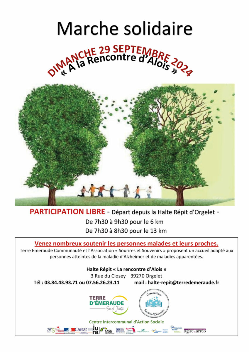 Départ depuis la Halte Répit d'Orgelet, 3 rue du Closey 39270 Orgelet : de 7h30 à 9h30 pour le 6km, de 7h30 à 8h30 pour le 13km. Participation libre.
